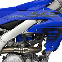 Aggressive bodywork including slim body panels and blacked-out radiator shrouds integrate with a bold graphics scheme to highlight the YZ's unmatched racing pedigree. Premium Yamaha Blue and dark blue graphics are embedded to provide excellent durability and scratch resistance.